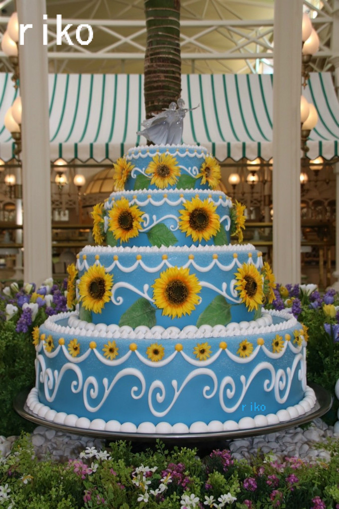 エルサのサプライズ風🌻ひまわりケーキ 劇中のケーキとは あまり似ませんが・😂🙏 「あのケーキ」をモチーフにした、水色×ひまわりデコレーションでした!🌻🌻 ⚫︎濃いめの水色ナッペ ⚫︎白クリーム絞り ⚫︎エメラルドグリーンの数字。