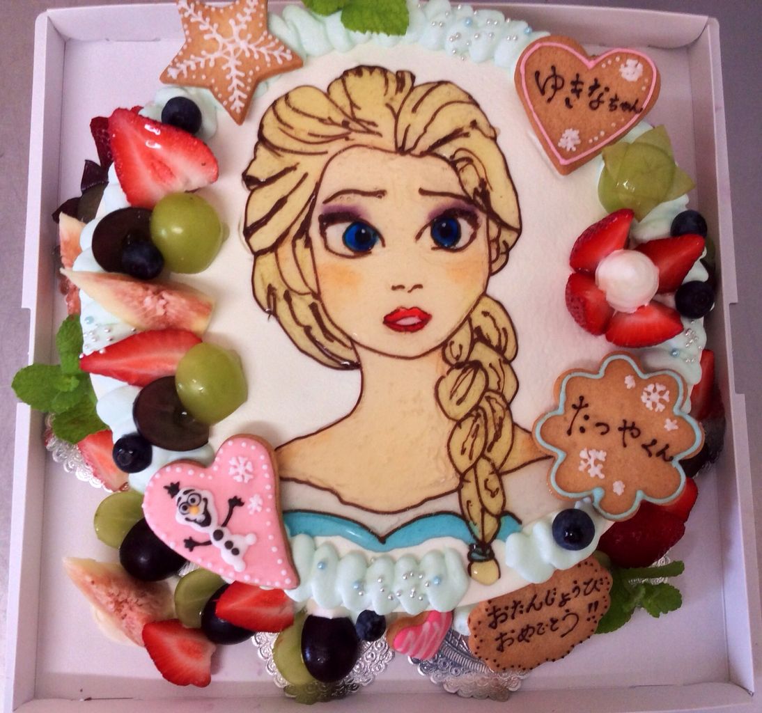 似顔絵とアナと雪の女王エルサのケーキオリジナルケーキ『おぐに』電車・車・キャラクター・似顔絵ケーキ宅配通販。