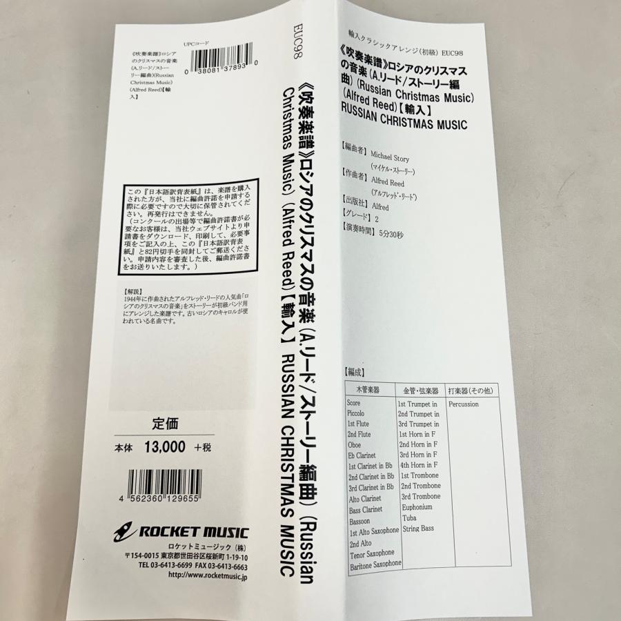 Alfred:A. リード ロシアのクリスマスの音楽2058FXB219 輸入吹奏楽譜 TG5 T:12:00 - 楽譜ネット 商品詳細。