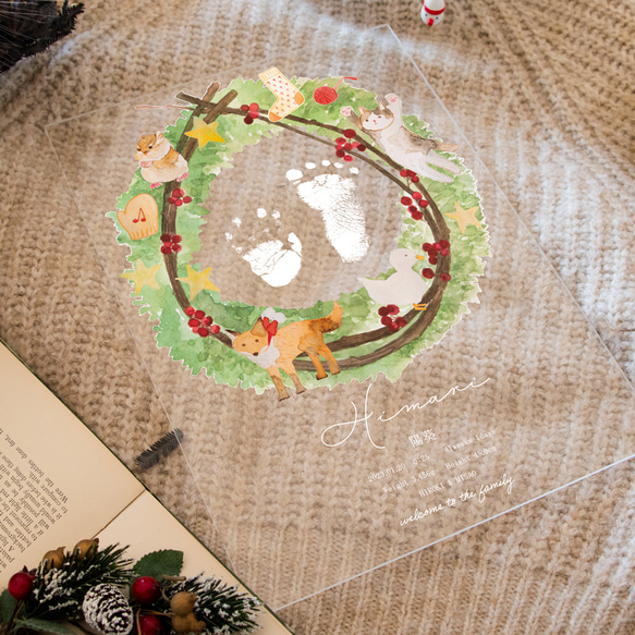 手形 足形 クリスマスリースとネコや動物たちの命名書 アクリル オーダー 名入れ ベビーポスター 雑貨・その他 Spica 通販18579414Creema クリーマ。