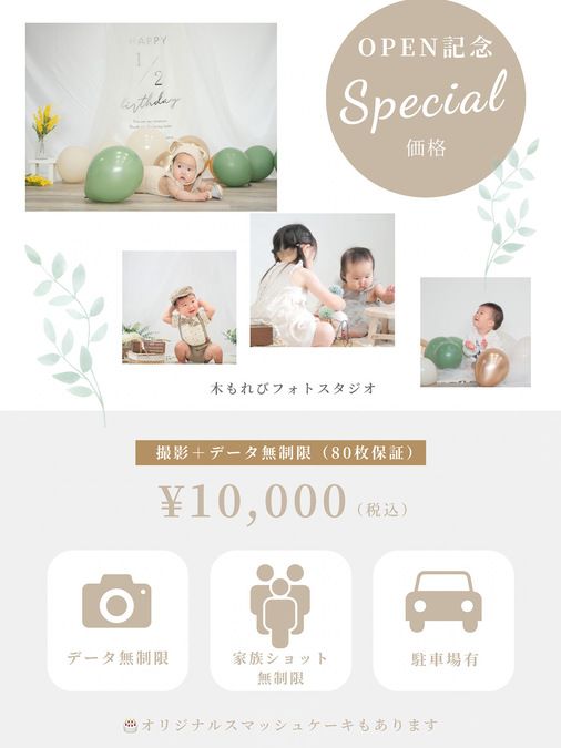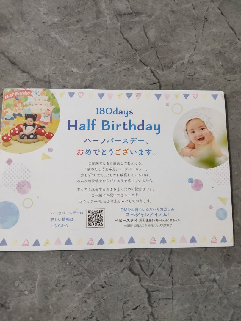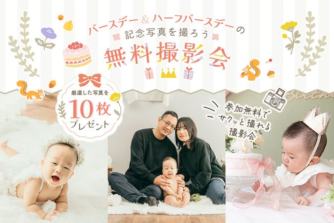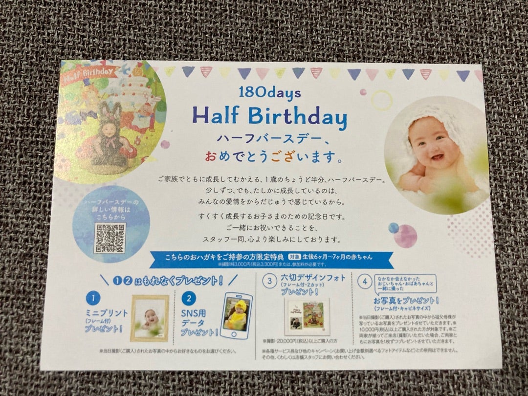 ハーフバースデー 記念写真 無料 招待券 クーポン 写真館 ハーフバースデーの撮影メニュ。