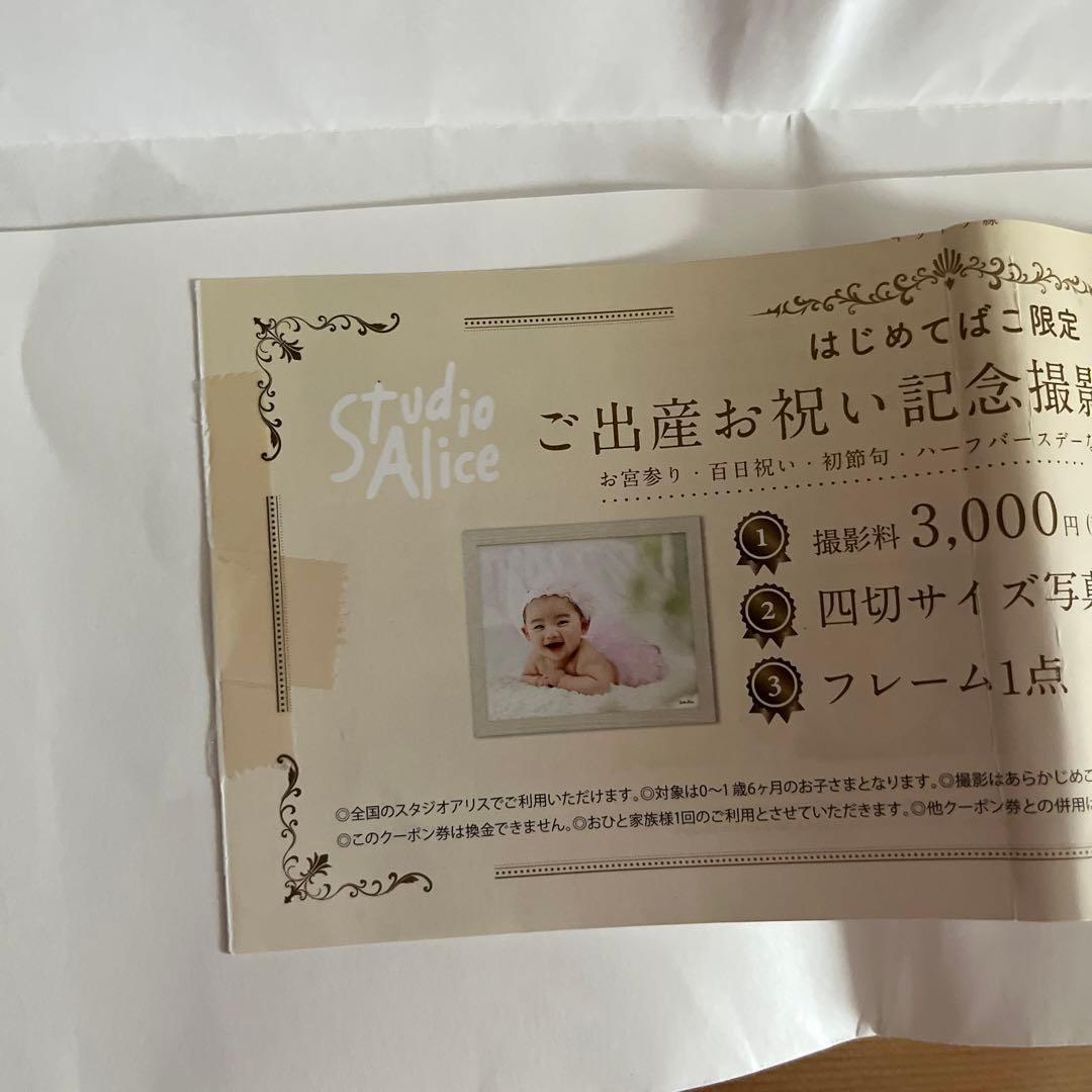 スタジオアリス 記念撮影ご優待券 無料券 クーポン お宮参り 百日祝い 初節句 ハーフバースデー はじめてばこ。