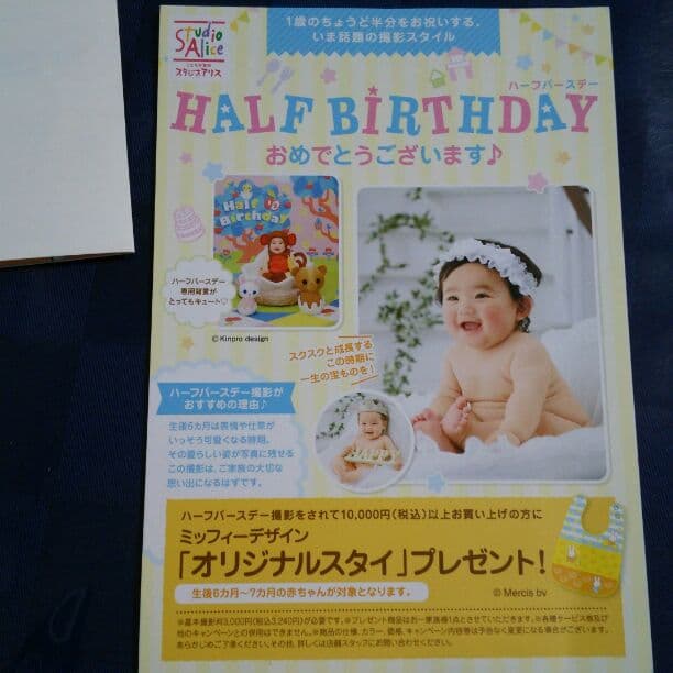 ハーフバースデー 記念写真 無料 招待券 クーポン 写真館 スタジオアリス 撮影料無料券。