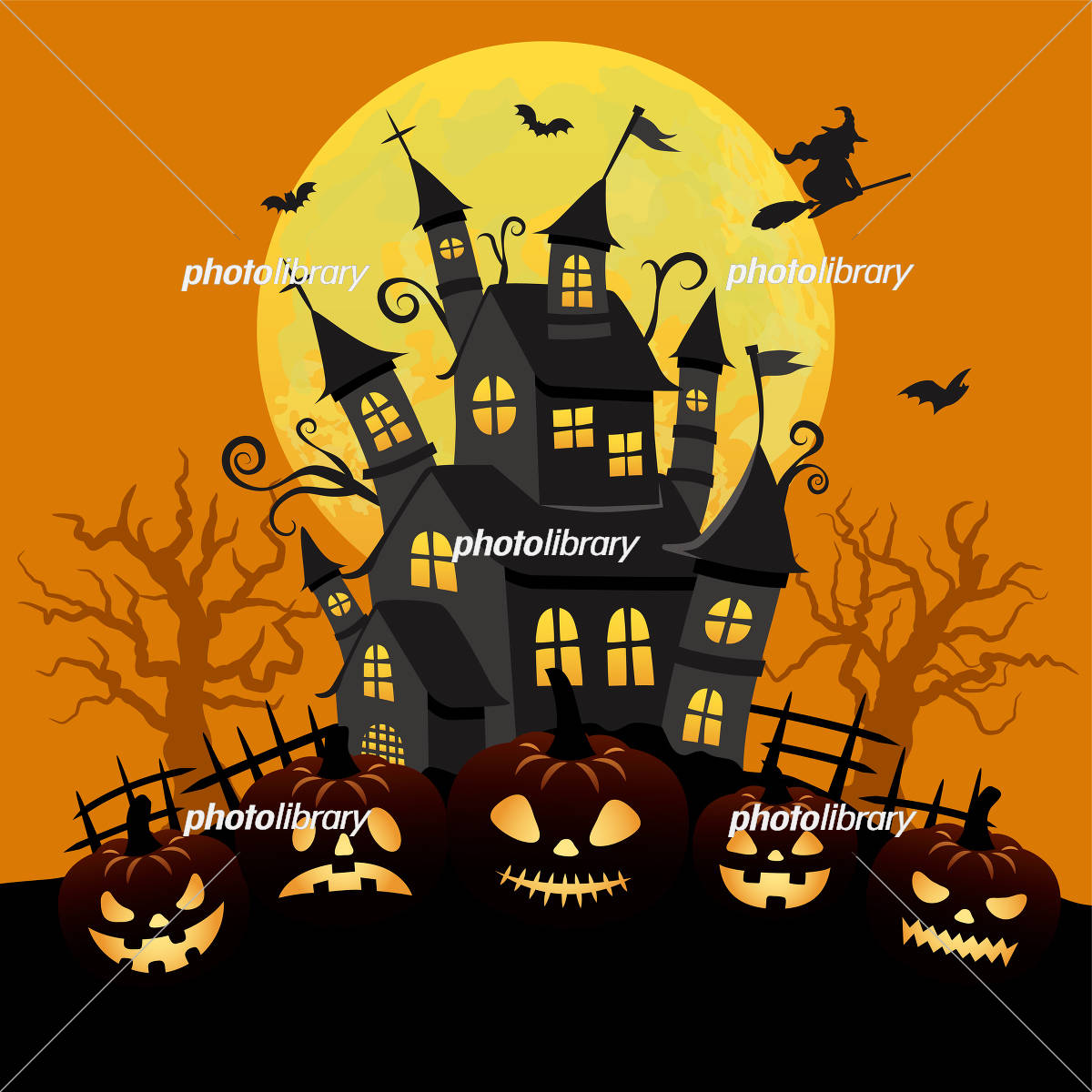 ハロウィン・お城と魔女とジャックオーランタンのイラスト Stock VectorAdobe Stock。