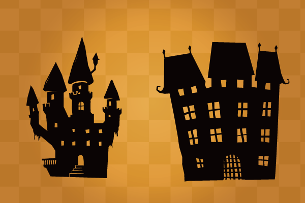 お城のイラスト シルエット・ハロウィン2カラー- イラストくん。