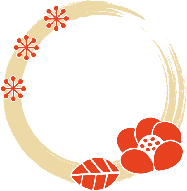 正月素材・椿のフレーム 毛筆風・赤無料イラスト素材素材ラボ。