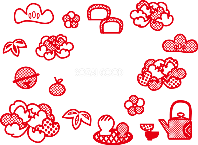 かわいい正月アイテムで円型に囲む フレーム枠イラスト無料フリー84439素材Good。