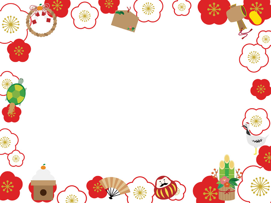 フリーイラスト梅の花と縁起物のお正月フレームパブリックドメインQ:著作権フリー画像素材集。