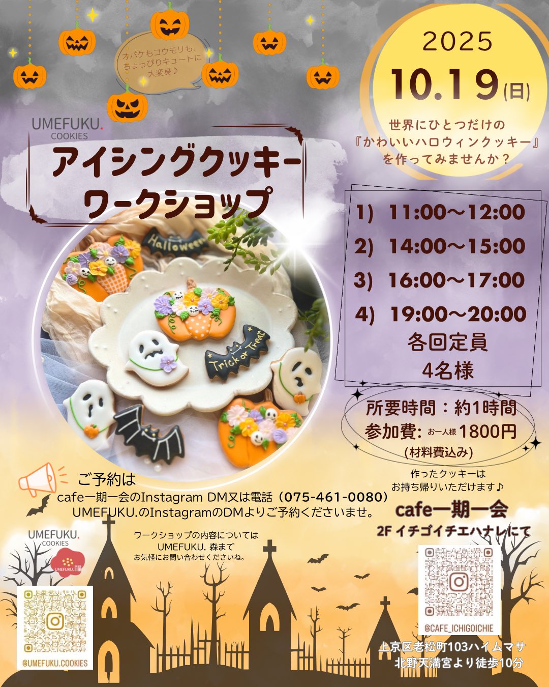 isa on X: "\ 第2回特別企画👻アイシングクッキーワークショップ世界にひとつだけの“たからものクッキー”をつくってみませんか?ハロウィン前にぴったりなワークショップです🍪✨ 📅 日時:2025年10月19日 日1 11:00〜12:00 2 14:00〜15:003 16:00〜17。