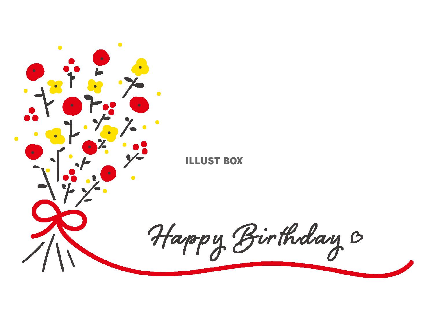 かわいい手描きの花束とハッピーバースデイの文字:イラスト無料。