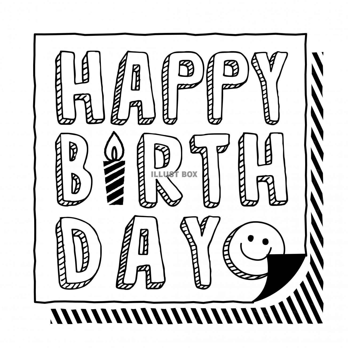 HappyBirthday文字 カラフルと白黒:イラスト無料。