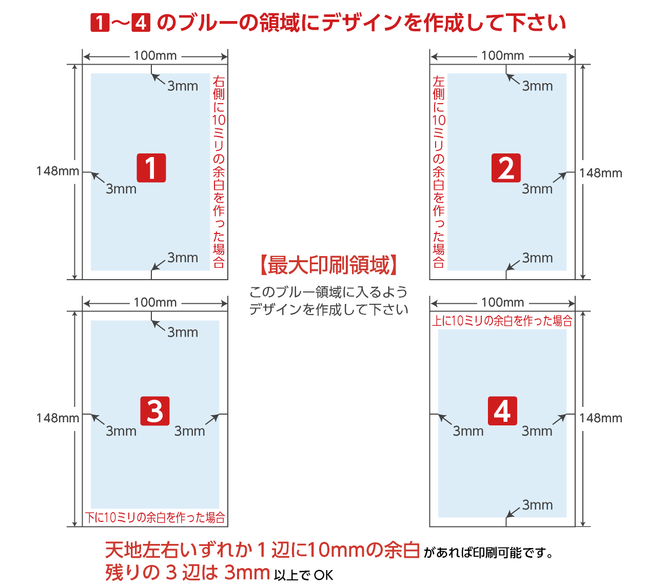 オフセット 四面年賀はがき・四面官製はがきの印刷領域 余白 を変更いたしました マツオ印刷。