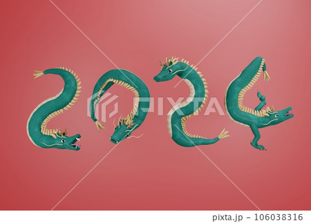 笑顔の竜で作った2024の文字 辰年年賀素材 はがきサイズ比率226695165- イメージマート。