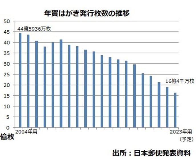 少しずつ、そして確実に減る「はがきの年賀状」の利用者と枚数 不破雷蔵- エキスパート - Yahoo!ニュース。