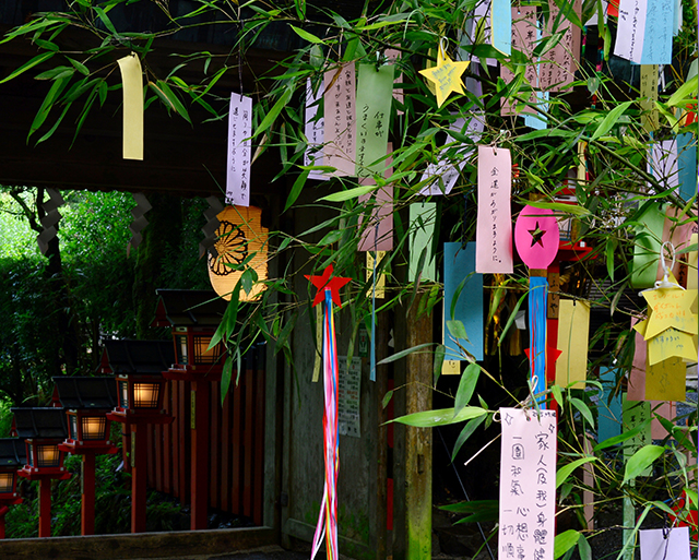 七夕かざりと短冊七夕特集縁結び祈願 京都地主神社。