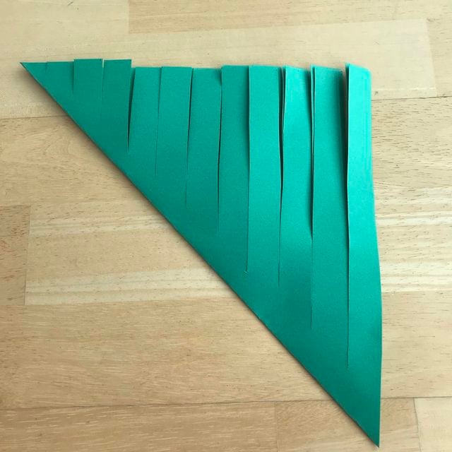 立体クリスマスツリーの折り方子供でもハサミで簡単にできる折り紙・切り絵AIF。