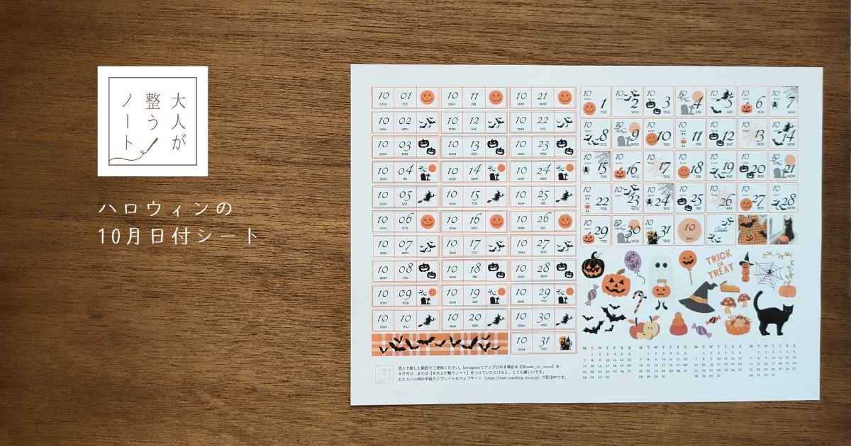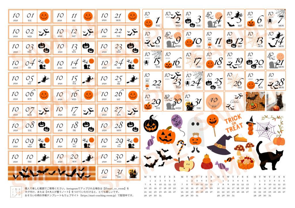 ハロウィンの10月日付シート 手帳素材無料ダウンロードMari Coaching Room。