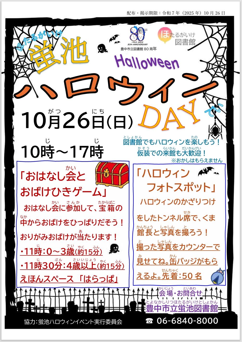 蛍池図書館 10月26日「蛍池ハロウィンDAY」を開催します。