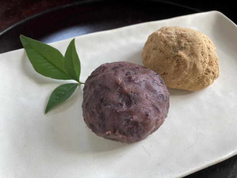 お盆の和菓子「糸切り団子」と「あんころ餅」龍月堂島田甘味つづり。