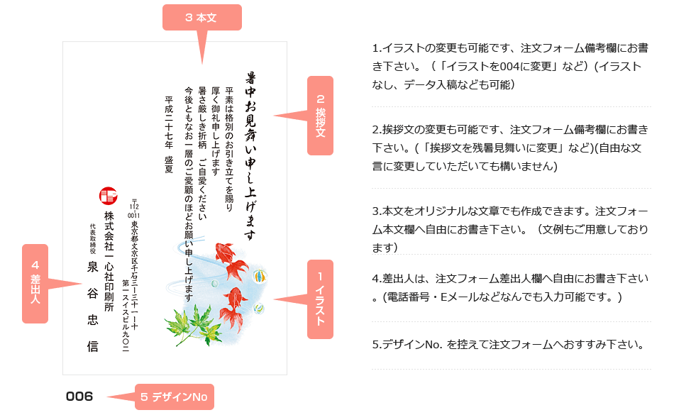 暑中お見舞い・残暑お見舞い 法人印刷 短納期1枚~注文OK挨拶状通販。