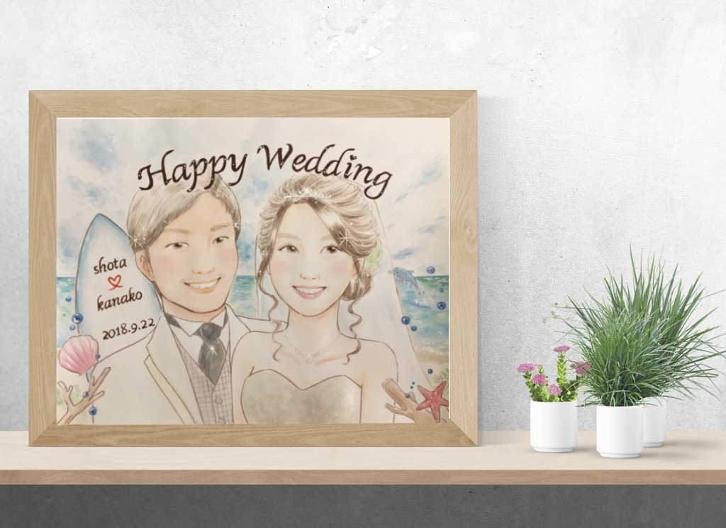 結婚式の似顔絵ウェルカムボード通販オレンジスマイル。