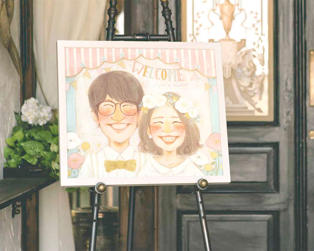 思い出になる!結婚式のウェルカムボードには似顔絵を入れてみて – Marry.Gift。