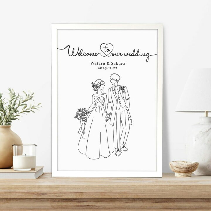 楽天市場 ウェルカムボード ウェルカムスペース 受付 ウェルカムスペース装飾 飾り付け 結婚式 線画 線画イラスト イラスト フレーム入りホワイトフレーム 名入れ ドレス 新郎 新婦 線画ウェルカムボードフレーム付「ウェディングハンズ」 A3サイズ: 結婚式。