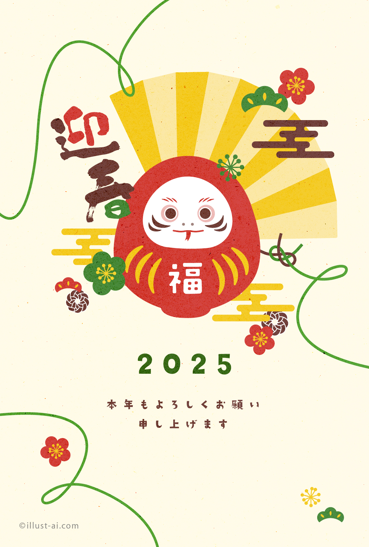 年賀状 巳年 赤いだるま×巳のイラスト年賀状 - 年賀状2025無料イラスト素材集。