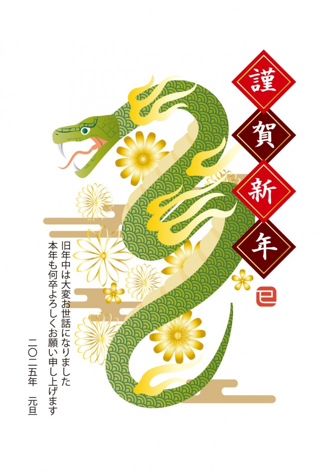2025年の干支「巳」の年賀状イラスト 縁起の良い蛇 – 無料ダウンロードイラストダウンロード。