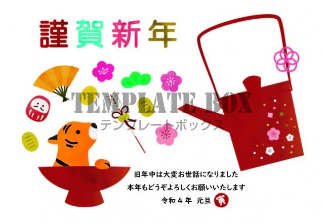 お正月アイテム盛りだくさん!縁起の良い2022年 令和4年 の年賀状・無病や長寿を願ったデザイン無料テンプレートTemplateBox。