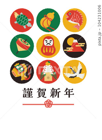 めでたいイラストの年賀状7 添え書きなし のイラスト素材104231006- PIXTA。