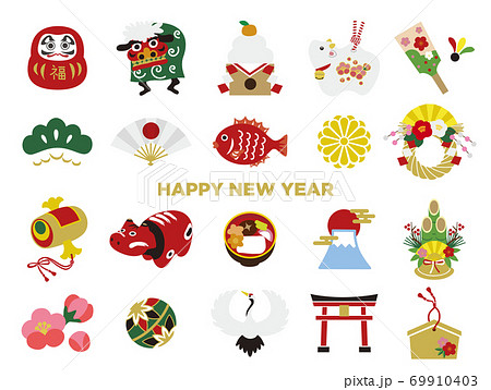 正月と年賀状の縁起物イラスト素材セットのイラスト素材69910403- PIXTA。