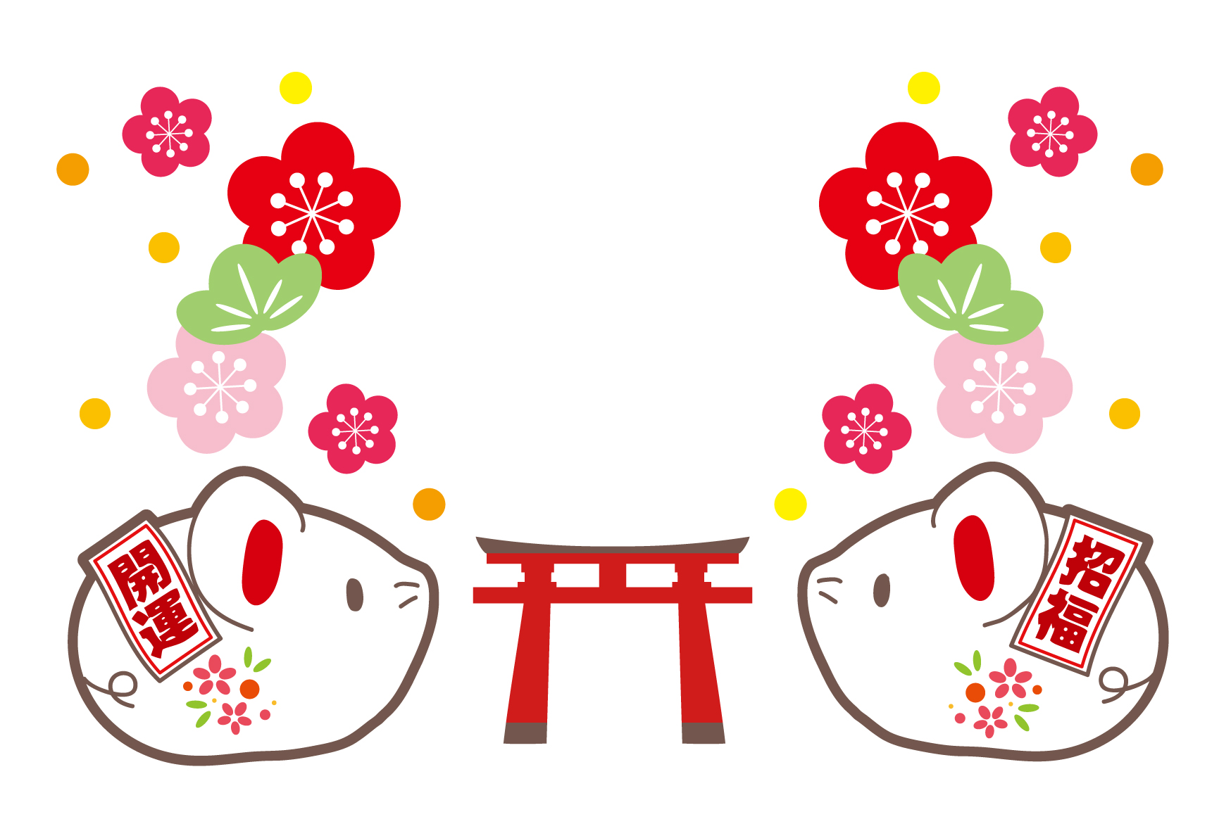 鳥居&開運と招福の文字入り無料イラストの2020年の年賀状素材📑無料ダウンロード!テンプレルン📑無料ダウンロード!テンプレルン。