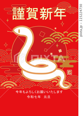 縁起の良い白蛇のイラストの年賀状 縦長のイラスト素材115224730- PIXTA。