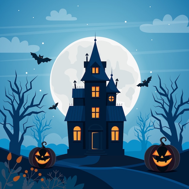 お化け屋敷と不気味な夜をテーマにしたハッピーハロウィーン, ハロウィン, ハッピーハロウィン, お化け屋敷背景壁紙画像素材無料ダウンロード -Pngtree。