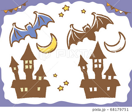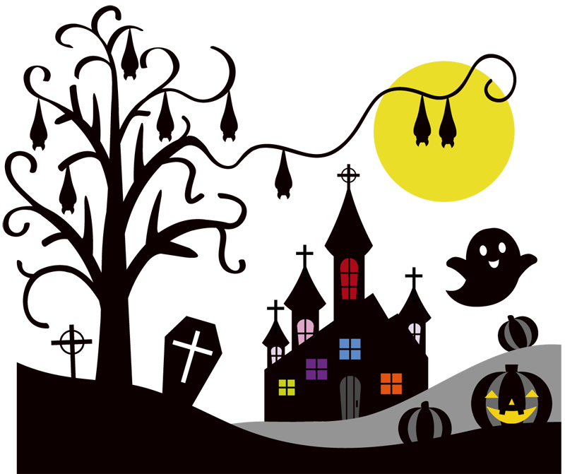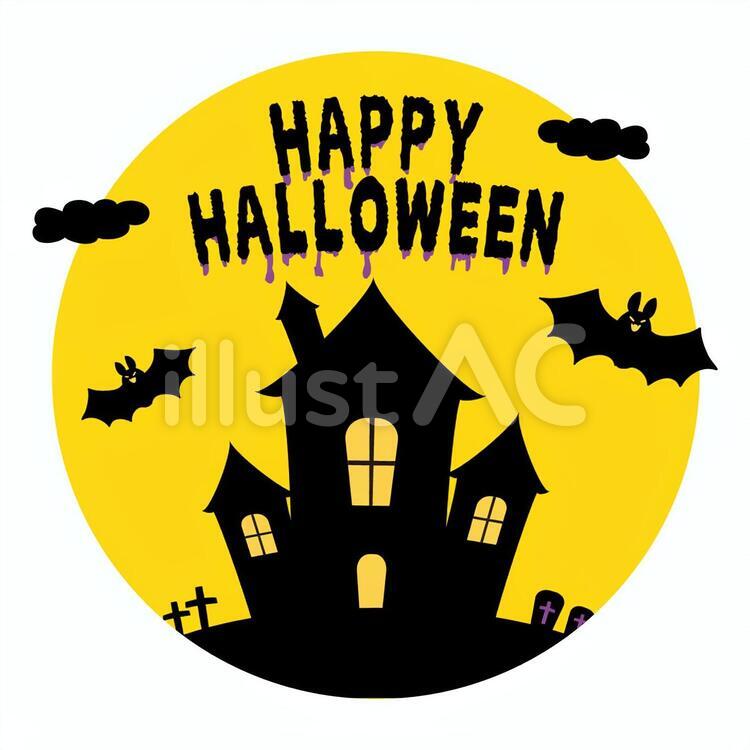 ハロウィン・コウモリとお化け屋敷のイラスト無料のフリー素材 イラストエイト。
