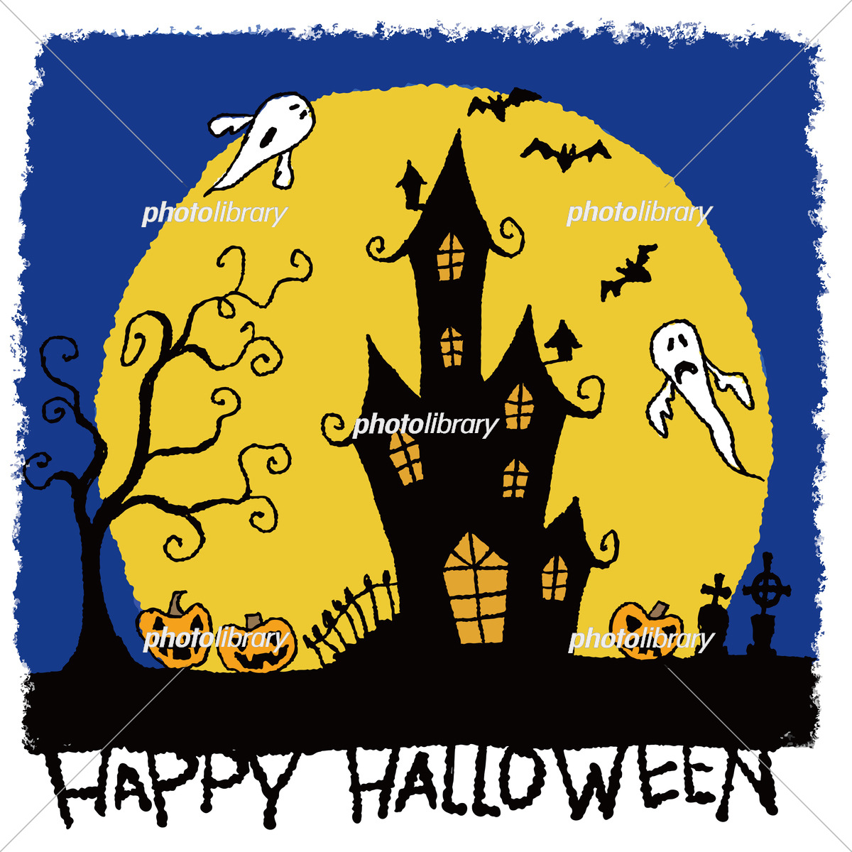 ハロウィンのイラスト お化け屋敷と幽霊とカボチャのランタンのイラスト素材81345707- PIXTA。