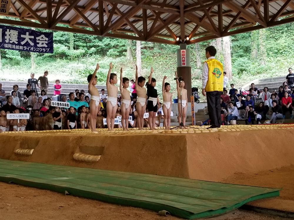 6月11日土曜日 久山相撲場で第26回福岡地区幼児相撲大会が行われました。昨年準優勝だったので選手宣誓もさせて頂きました。 ほかの園の子ども達の顔が多数移ってましたので写真は載せてません。しっかりと元気な声で宣誓出来ました。 午前中は予選3試合。ここ。