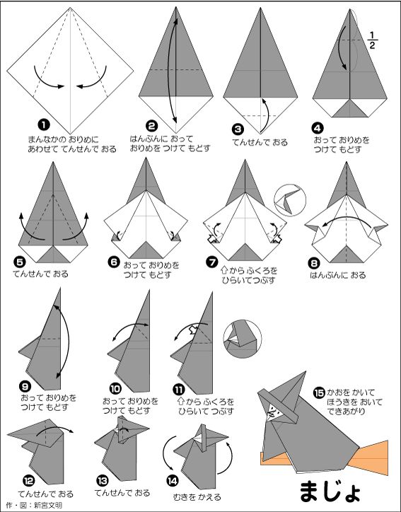 折り紙でハロウィンの魔女とほうきの折り方!簡単かわいい作り方セツの折り紙処。
