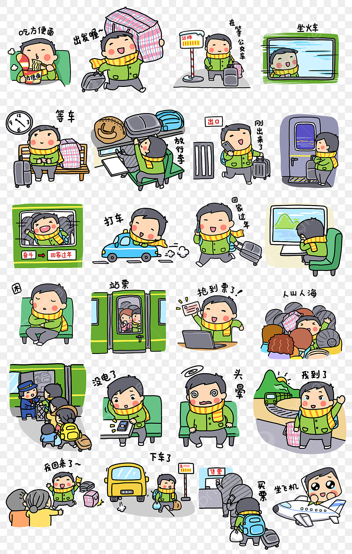 家に帰るハッピーチャイルドスプリングフェスティバル絵文字イラストハンドドロー絵文字イラストイラスト画像とPSDフリー素材透過の無料ダウンロード -Pngtree。