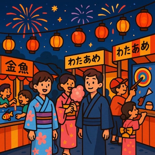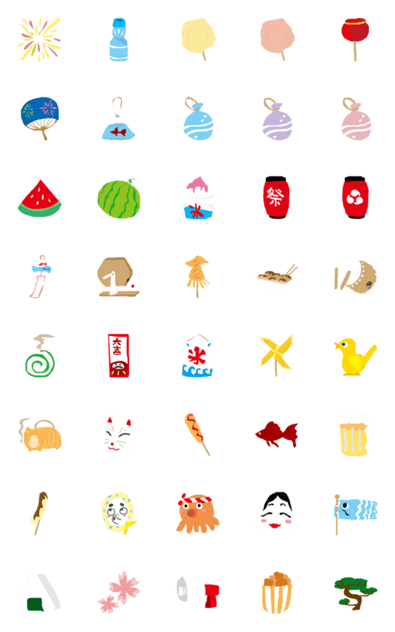 夏祭り、縁日の絵文字のLINE絵文字画像、情報など。