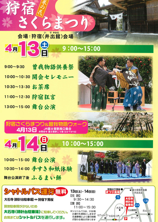 狩宿の下馬桜と井出館 富士宮 』狩宿さくらまつりと源頼朝ゆかりの日本五大桜 - すそのナビ。